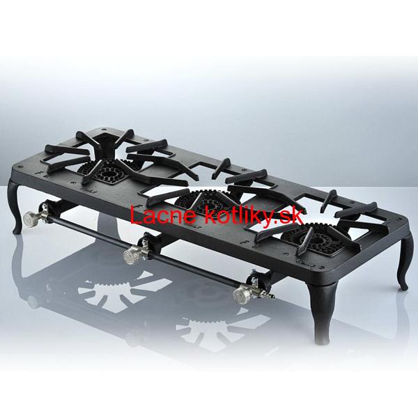 Plynová stolička - priemyselný liatinový varič model Europa. Celoliatinový trojhorákový varič s plošným horením na Propán-bután, s plynulou reguláciou výkonu vhodný pre varenie napríklad na záhrade, v prírode alebo domácej "druhej kuchyni".