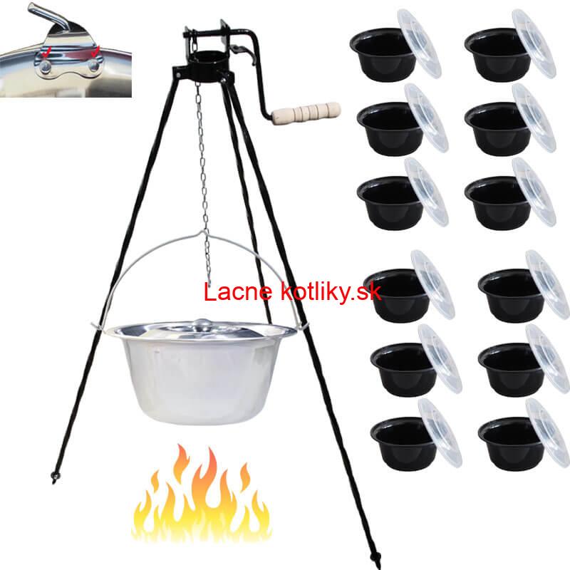 - Antikorový kotlík 15 L (0,8 mm) s nitmi + stojan s kladkou VAR + misky 12 ks