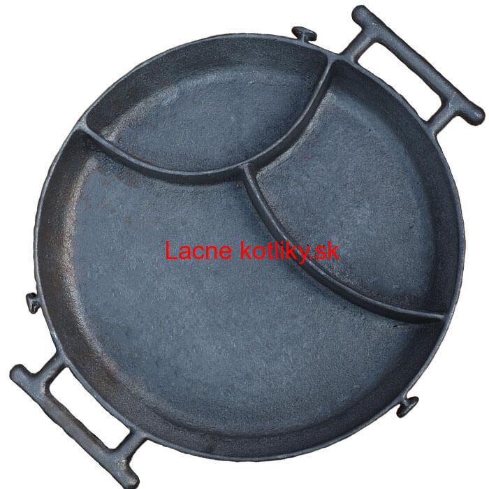 Multifunkčná liatinová panvica na pečenie, grilovanie a varenie pokrmov. Na panvici môžete naraz pripravovať viac pochutín. Vnútorná časť panvice na pečenie je rozdelená do troch častí. V každej časti panvice môžete piecť, variť, grilovať a opekať rôzne pochutiny napr. mäso, ryby, zeleninu, špekačky, párky ...
