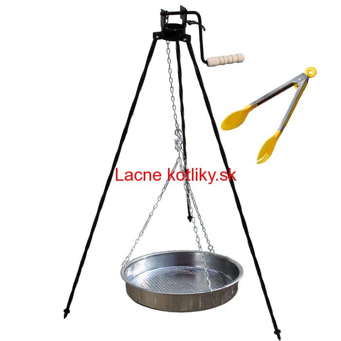 - Nerezová panvica s retiazkou 49 cm + trojnožka s poistnou kladkou a obracačka na mäso GRILL PARTY 3