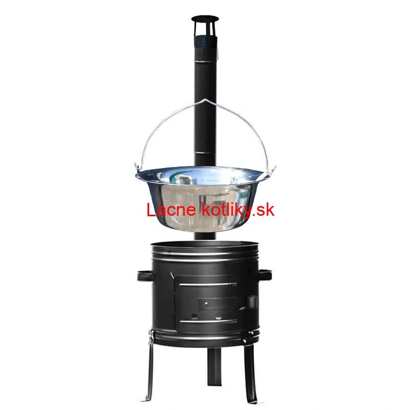 Kovová kotlina pod kotlík s demontovateľnými nožičkami aj úchytkami pre lepší prevoz a skladovanie.