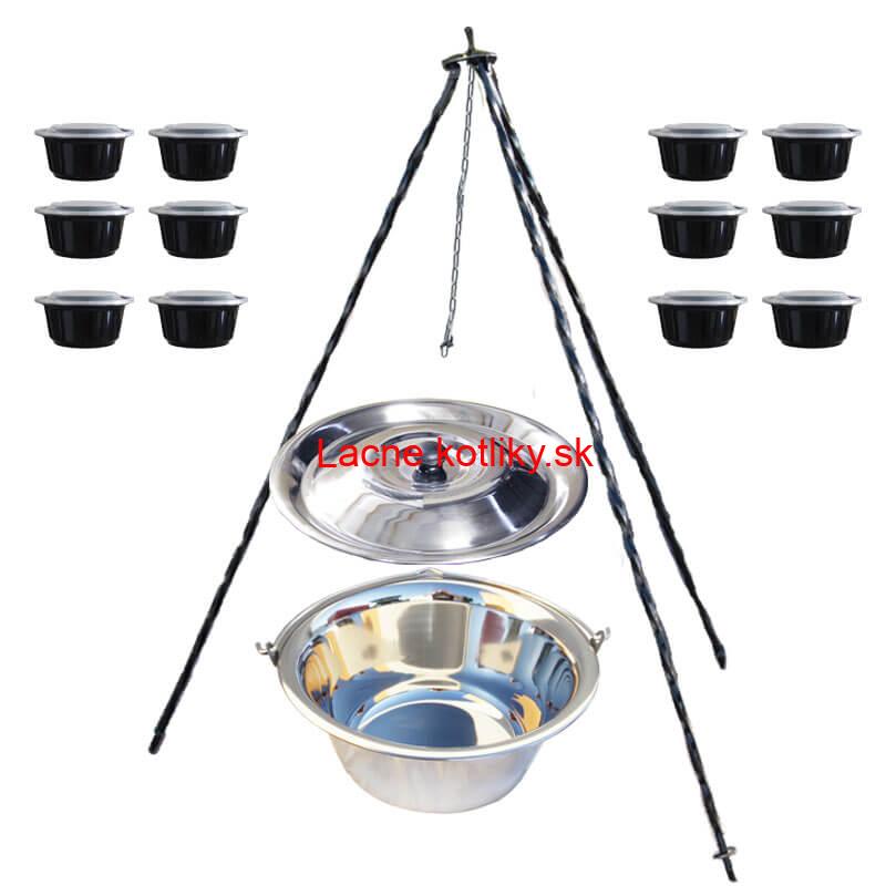 - Nerezový kotlík 8 L (0,8 mm) + antikorová pokrievka + stojan + misky 12 ks