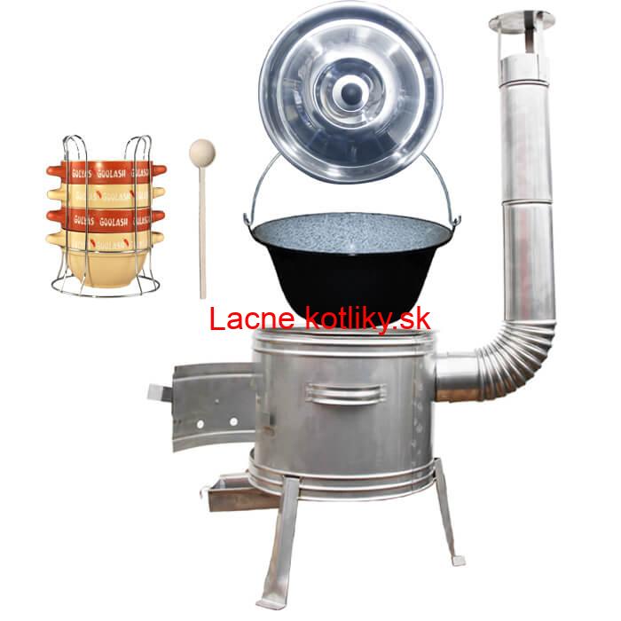 Kotlíková súprava na varenie gulášu , pečenie a grilovanie klobás, steakov, špekáčikov, slaniny, mäsa, zeleniny a iných pochutín v záhrade, v prírode pre rodiny, rôzne spoločenské akcie a posedenia pri dobrom guláši a grilovaní.