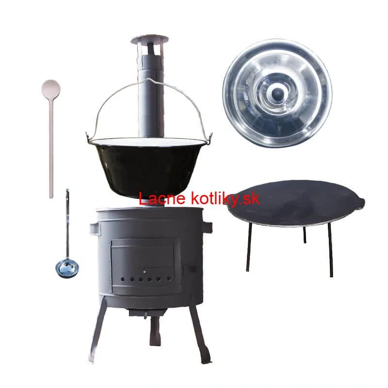Kotlíková súprava na varenie gulášu a iných pochutín v záhrade, v prírode pre rodiny, rôzne spoločenské akcie a posedenia pri dobrom guláši.