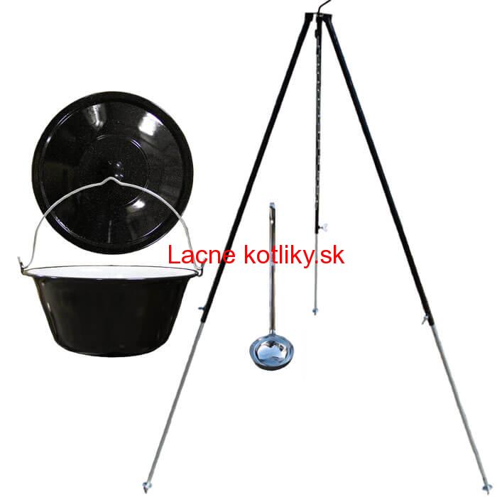 Smaltovaný kotlík 30 L + pokrievka + teleskopická trojnožka 1,40 m