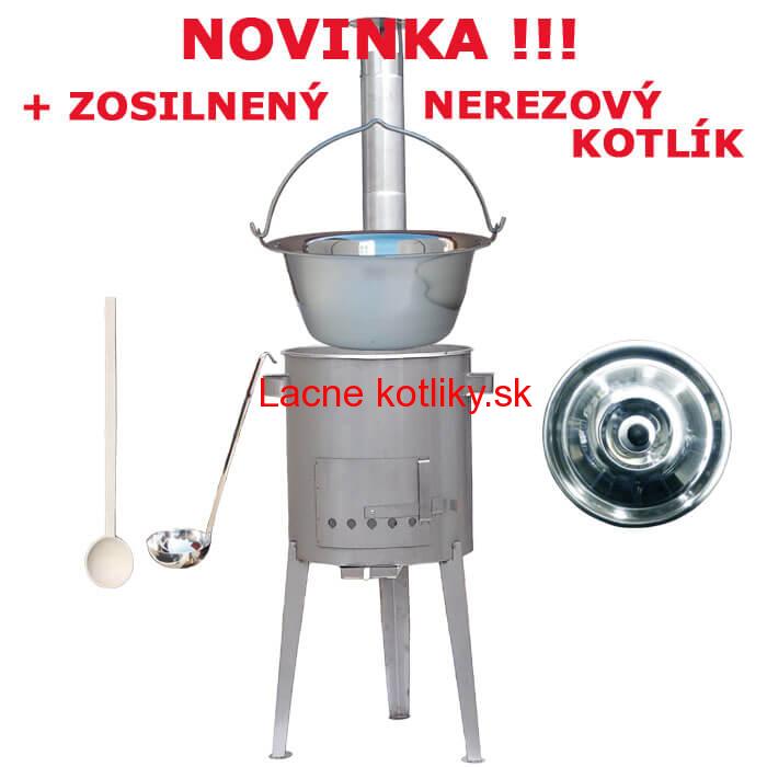 Nerezový kotlík je zosilnený v spojoch. Nosná obruč na zavesenie kotlíka už nie je spojená zvarom ku kotlíku, ale dvoma silnými nitmi. Kotlík sa stáva odolnejším pri zavesení na trojnožku.